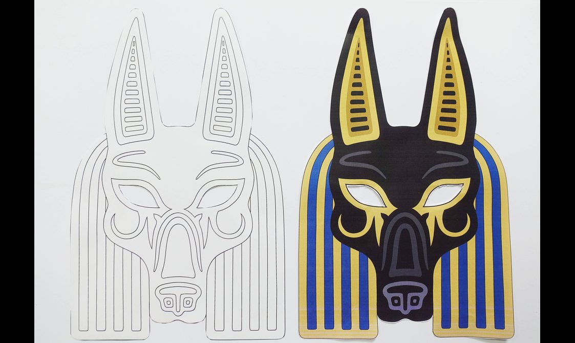 Colour in and keep a jackal mask. Based on the Egyptian god, Anubis, the god of mummification, jackal masks were sometimes worn by priests when carrying out the mummification process in order to act as a stand in for Anubis.