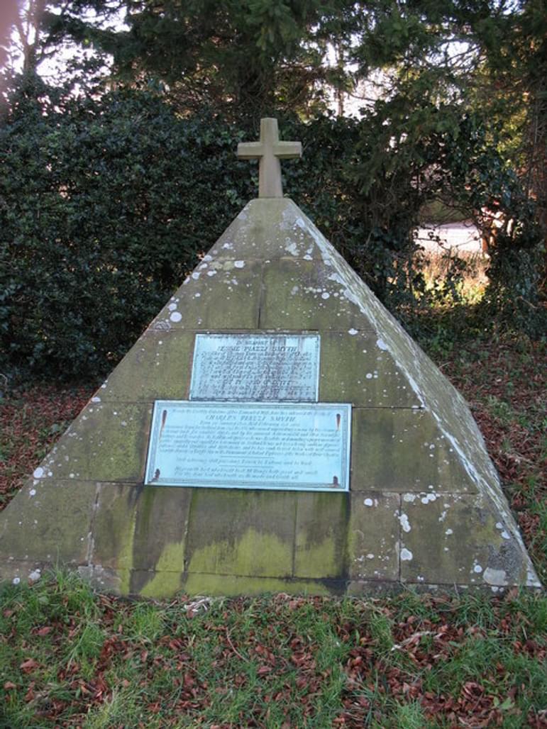 Charles Piazzi Smyth resigned as Astronomer Royal in 1888 and retired to Ripon in Yorkshire, where he died in 1900. He was buried at St John's Church in the village of Sharow, where his grave is marked by, of course, a pyramid.