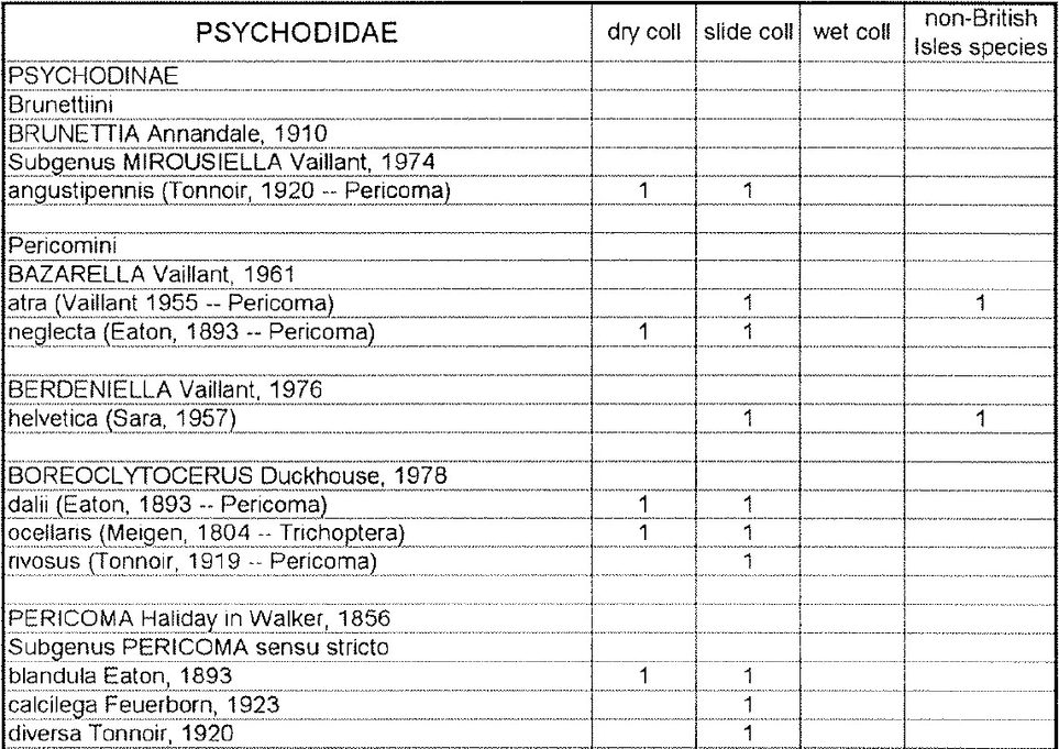 Example of taxonomy data: a list of taxa held for Diptera: Psychodidae.