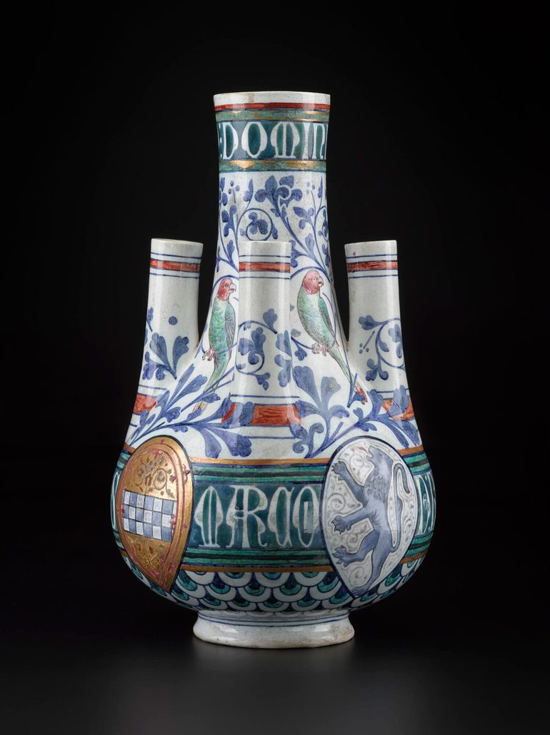 Flower vase, glazed stoneware with painted and gilded decoration, designed by William Burges (1821 - 1881) for Cardiff Castle, Wales, probably made in Shropshire, possibly decorated in London, dated 1874 (K.2017.14).