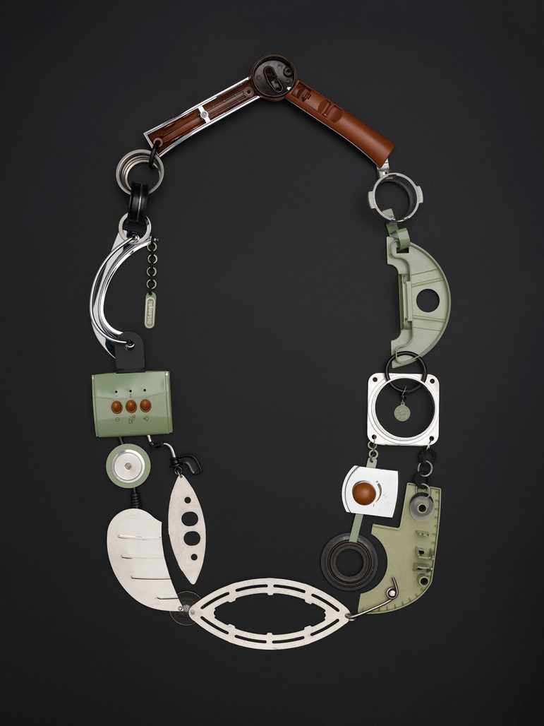 Significant capsule collections have been developed, such as the Northern Modernist jewellery collection supported by the Art Fund New Collecting Award, and the Terry Brodie Smith Contemporary Jewellery collection. Recent important acquisitions include an early work by the internationally renowned Scottish jewellery artist and educator Dorothy Hogg, a brooch which incorporates traditional silversmithing and leading digital technology by Glasgow-based Silvia Weidenbach, and a necklace created from a coffee machine during the 2020 pandemic by the artist jeweller Veronika Fabian.