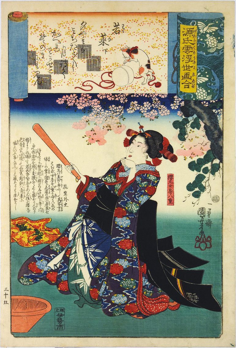 Colour woodblock print from the series Genji kumo ukiyo-e awase (Ukiyo-e Parallels to the Genji Clouds) by Utagawa Kuniyoshi, Japan, 1845. A.1887.745.69.34