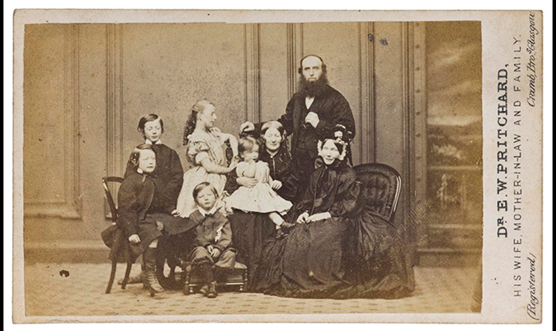 Carte-de-visite of the Pritchard family. Dr Edward Pritchard would later be convicted of poisoning his wife and mother-in-law. Part of the Howarth-Loomes Collection at National Museums Scotland.