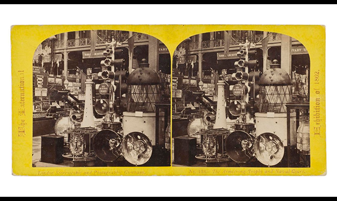 This stereocard made by the London Stereoscopic Company, shows a display put on by the Northern Lighthouse Board at the 1862 International Exhibition, held in London. Part of the Howarth-Loomes Collection at National Museums Scotland.