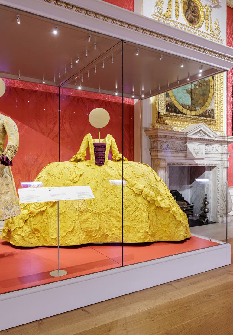 250 years on from its first appearance, the yellow mantua is now once again gracing the rooms of a royal palace. It's been a long journey, from condition checking, to being packed for travel, then unpacked and installed on a mannequin. Fortunately, today, seeing the wonderful yellow mantua is not just restricted to those attending a royal ball, you can see it with 200 fascinating objects in Crown to Couture exhibition at Kensington Palace from 5 April to 29 October 2023.